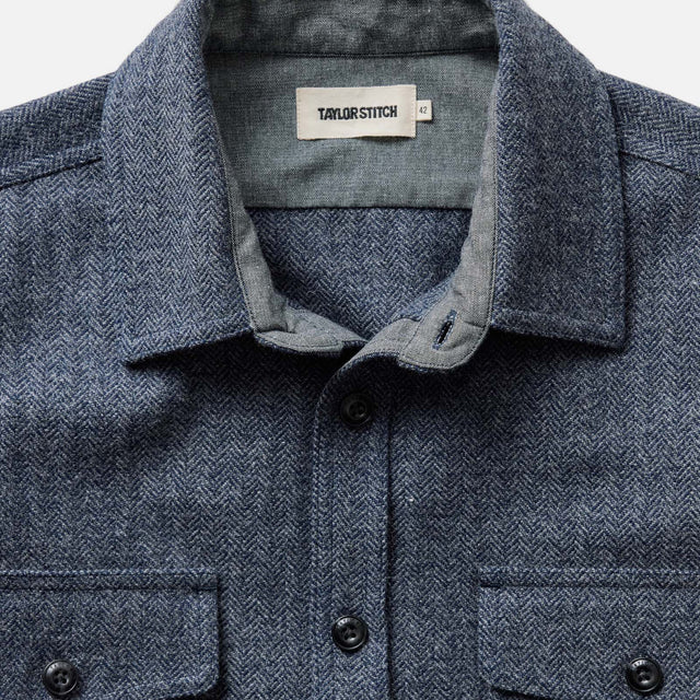 The CPO Overshirt in Indigo Wash Wool Herringbone