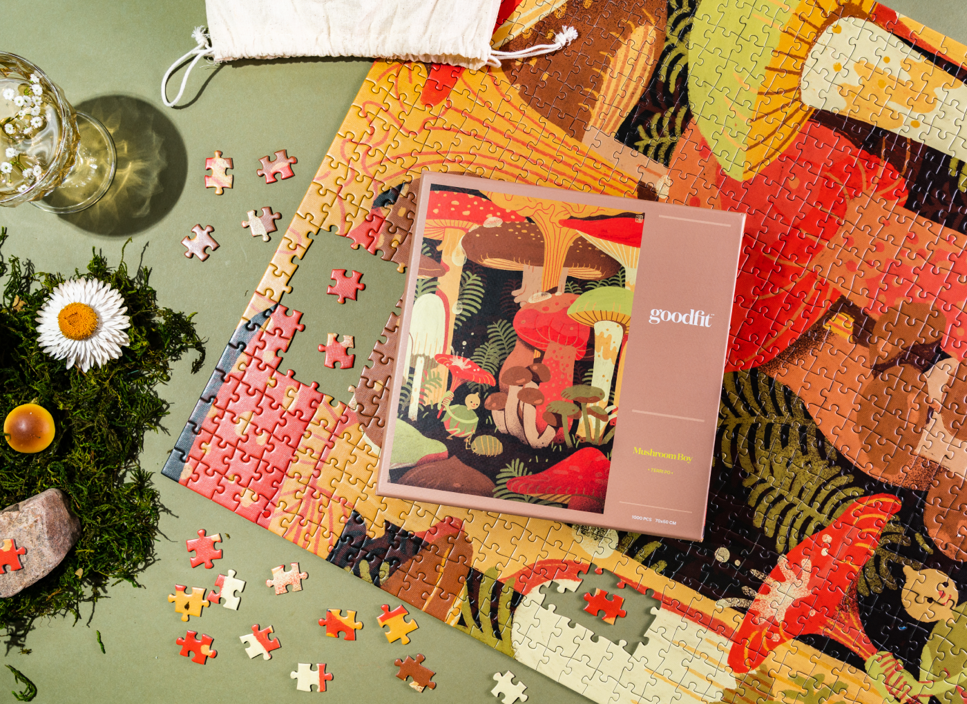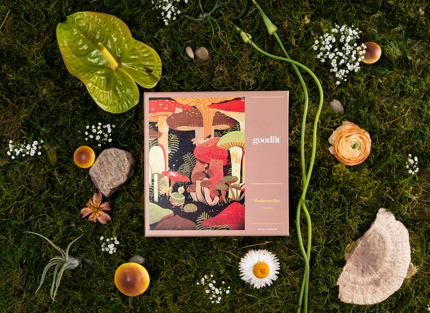 Step into the mysterious world of mycology with Mushroom Boy as your guide & companion. Artist Terri Po’s deep connection to nature is palpable in this puzzle - as the different sections come together, you will be transported to a vibrant forest full of fantastic fungi that reflect the diversity and uniqueness of the world around us. This 1000 piece puzzle presents a medium-level challenge that will never leave you feeling stuck. With a multitude of differing textures and organic patterns throughout the artwork, you’ll be able to sort through the pieces and watch as the vibrant forest comes to life.