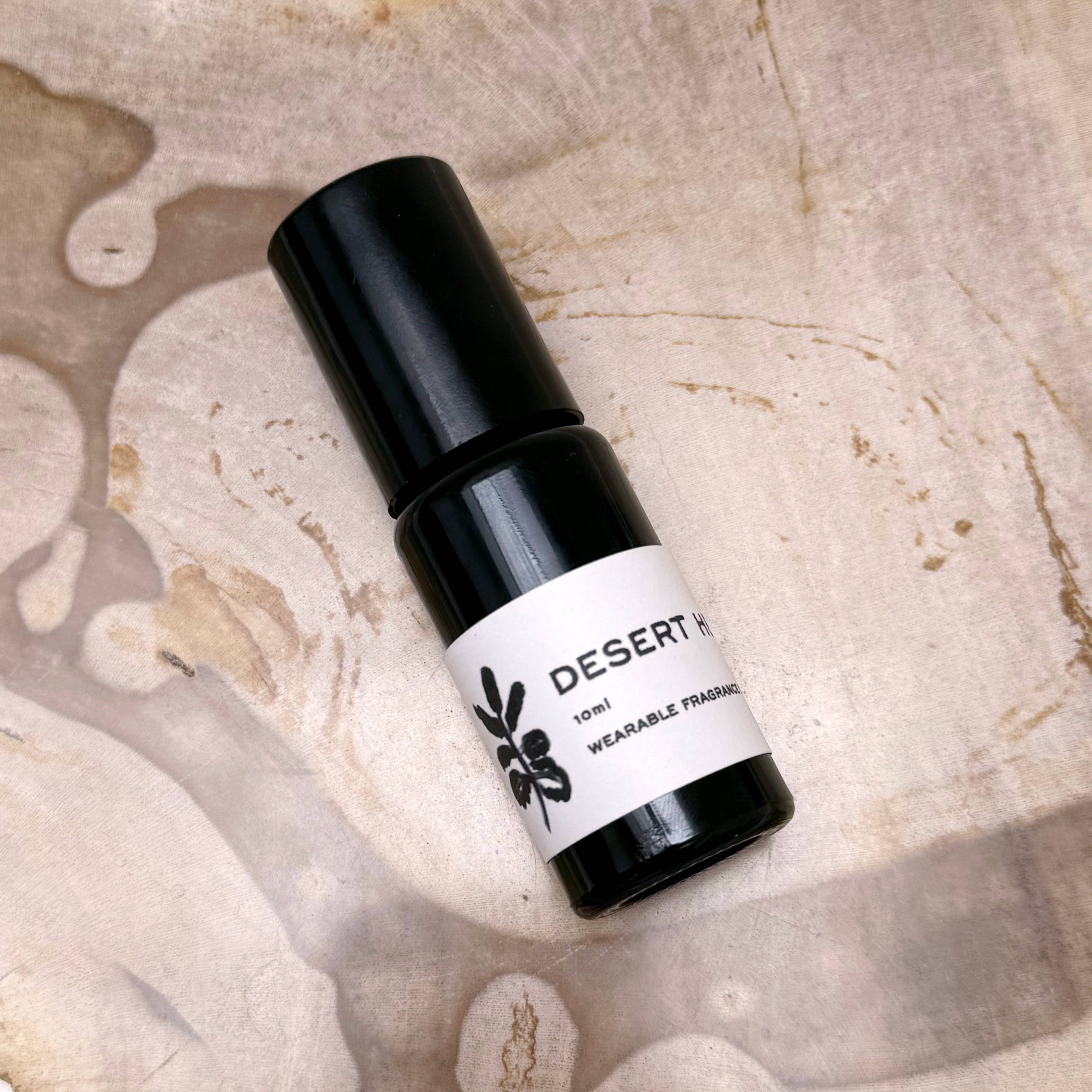Inspired by the stillness and warmth of the desert. Desert Heights blends dry cedarwood, sun-warmed pinyon pine, and soft sage for a scent that’s earthy, clean, and quietly grounding. Hand-blended in small batches with organic jojoba oil for a stable shelf life and long-lasting personal wear. Packaged in a durable and UV protected roll-on glass bottle—perfect for travel or everyday use. Notes: Cedarwood, Pinyon, Sun Warmed Mineral, Patchouli, Sage Format: 10ml roll-on Vegan & phthalate-free
