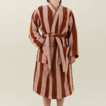 Simple Striped Terry Bathrobe- Blush/Terracotta: Small