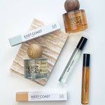 Pacific Coast- the cool, older brother to East Coast, our flagship scent. We formulated our first ever body fragrances with the intent to make the classical base note of nearly every perfume known to man –ambroxan– the leading role. Ambroxan is the molecule that gives ambergris it’s natural, sought-after scent. We added deep woodsy greens like red cedar and juniper, with notes of sea salt, musk & peppercorn. West Coast is dramatic, luminous, and rugged– like the sweeping Pacific coast we know and adore. Spritz on wet skin for the strongest, longest lasting fragrance. Notes: Amber, Cedar, Peppercorn, Musk INGREDIENTS: Denat. Alcohol, Fragrance/Parfum, Water/Aqua/Eau • BENEFITTING SurfRider Foundation • 10 ML, .34 OZ.