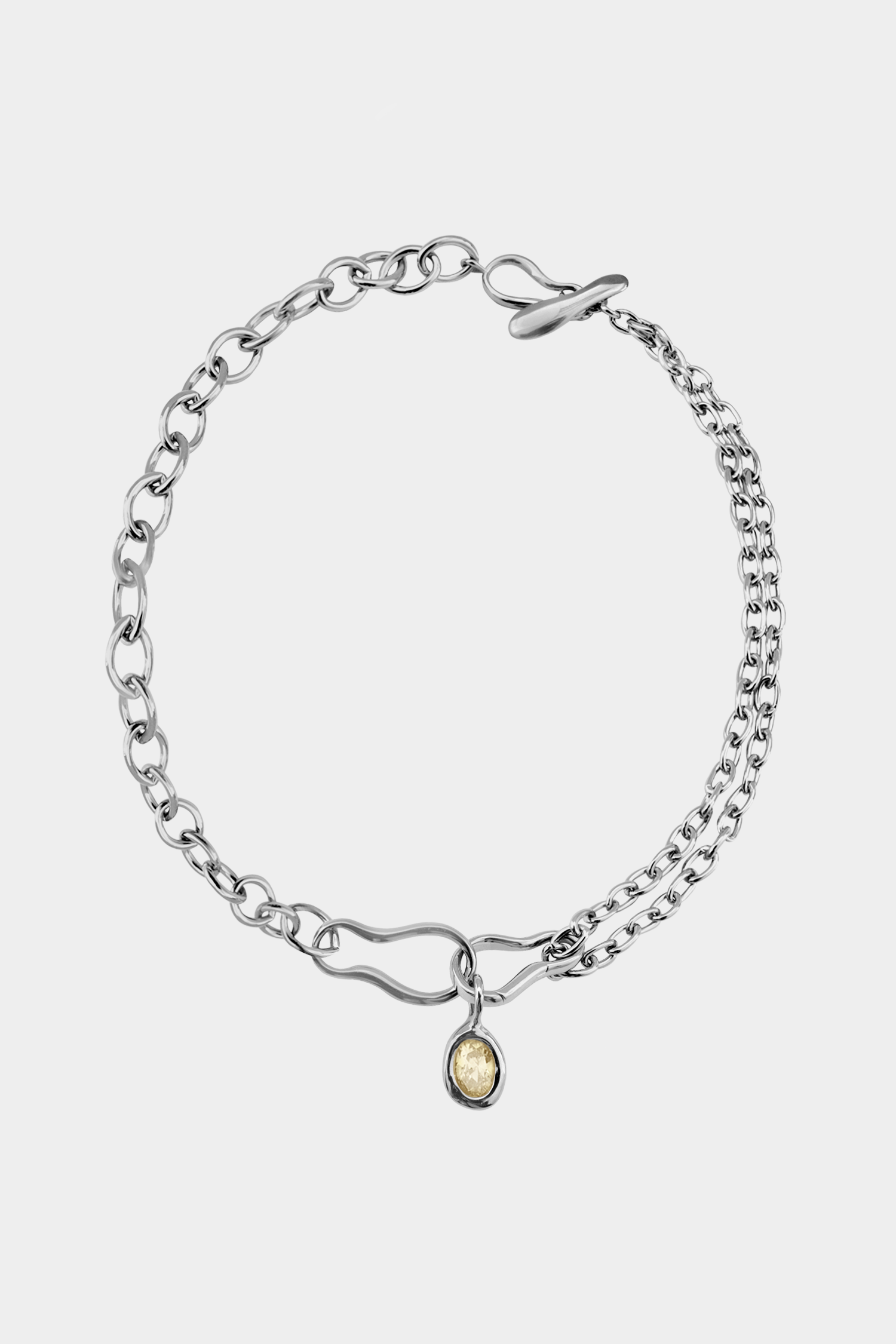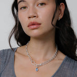 A two in one piece of jewellery that is a necklace or can be taken apart at the hinged link to make a bracelet. Our Sabine Necklace also has the same feature! Ramona Necklace: * Metal: Silver Plated Brass (15 microns) or 14K Gold Plated Brass (1 micron) * Dimensions: 16.5" length ; 7.5” of chain is removable to convert the necklace into a bracelet. * Closure: Hook and Eye * Weight: 31g * Nickel-free + hypoallergenic * Designed by Kara Yoo * Imported Ami Charm - the charm is attached to the hinged link on the necklace. * Metal: Sterling Silver or 14K Gold Plated Brass (1 micron) * Gemstone: Butter, CZ ; Coffee, CZ ; Sky, Spinel * Dimensions: Pendants - 14.7mm * Weight: 2.2g * Nickel-free + hypoallergenic * Designed by Kara Yoo * Imported