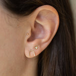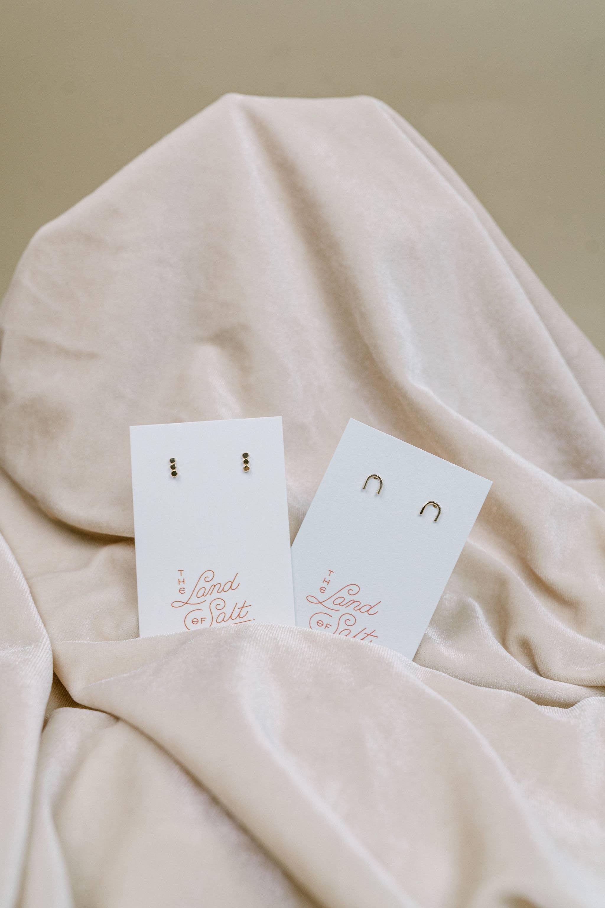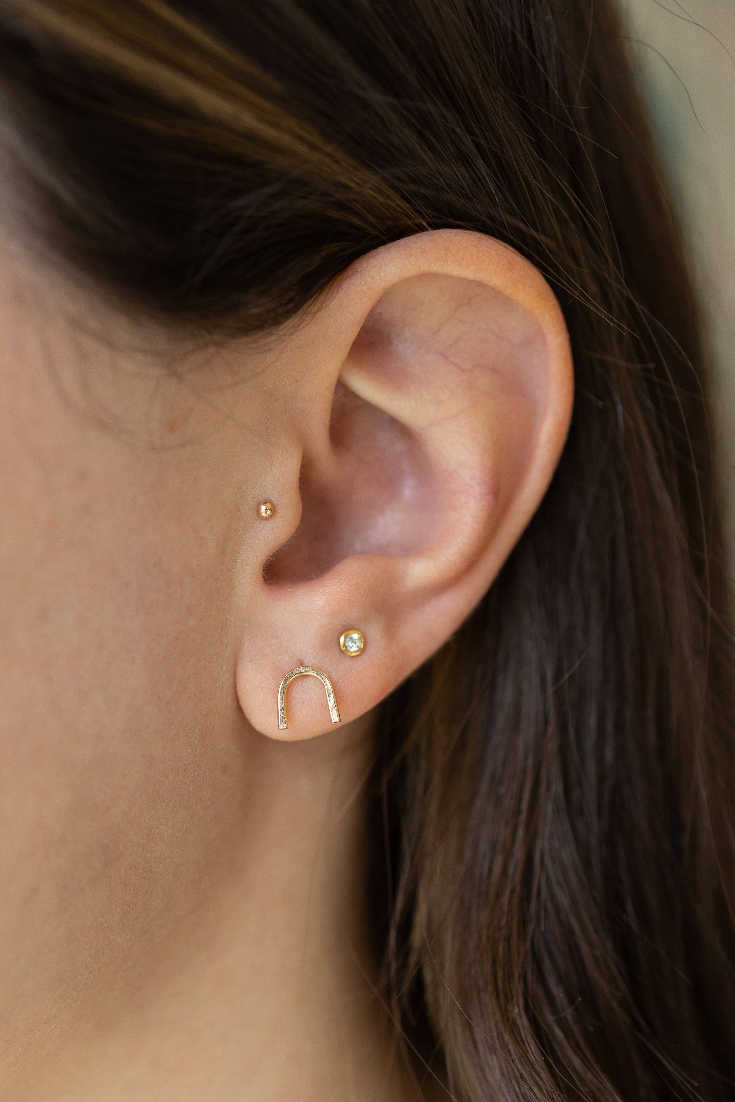 Handmade dainty minimalist gold-filled arch stud earrings with sterling silver ear posts and earring backs with a bonus rubber backing Materials: Earrings fronts are 14k Gold-Filled, Backs are .925 Sterling Silver Hypoallergenic and good for those with sensitive ears Handmade by The Land of Salt based in Salt Lake City, UT