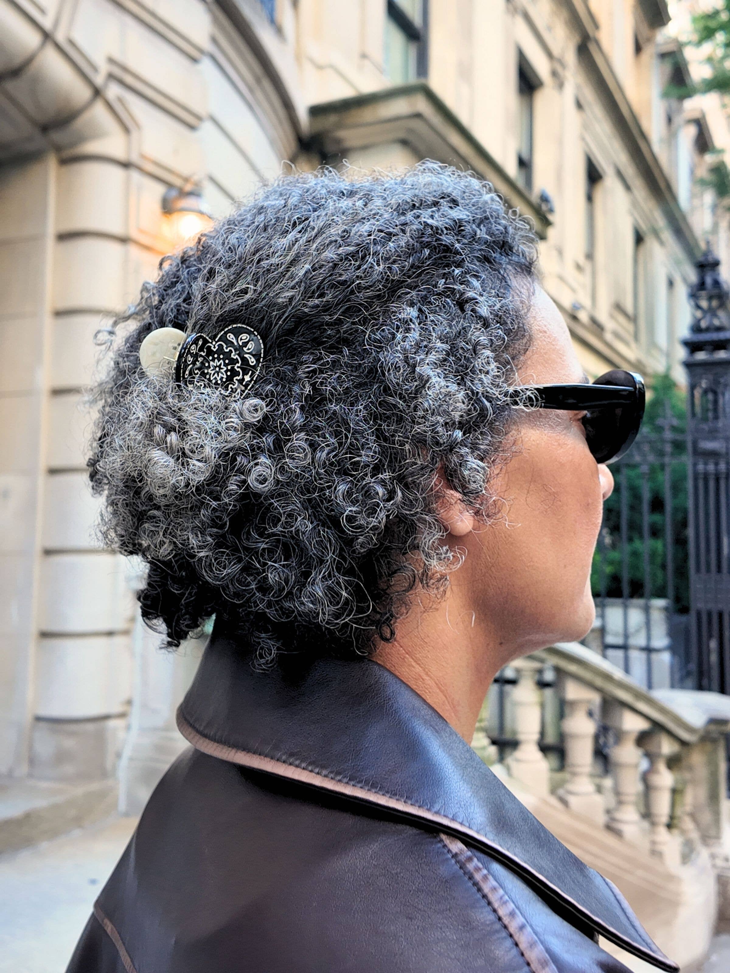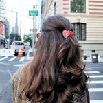 Mini Paisley Heart Claw Clip — a petite take on our beloved hand-painted original. Featuring our signature paisley heart motif in two bold colorways (Red or White/Black), this small-but-mighty clip is perfect for half-up styles, fine hair, or adding a sweet, subtle pop to your everyday look. Designed in New York City and hand-painted by our Solar Eclipse artists, each clip is double-sided for a flawless look from any angle. Crafted in small batches from our signature biodegradable cellulose acetate, it’s lightweight, durable, and built to last.