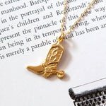 Deadstock vintage bright gold-plated cowboy boot charm on a high-quality gold vermeil cable chain (2X industry standard gold-plating on 100% recycled sterling silver). All materials are sustainable, eco-friendly, and ethically sourced. Vintage charms may have some signs of wear, but that's just what gives them character :) 16" length chain 23x21mm charm