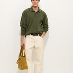 • Details we love: Garment-dyed, slightly dropped shoulder, herringbone cotton interior placket, cotton twill collar.