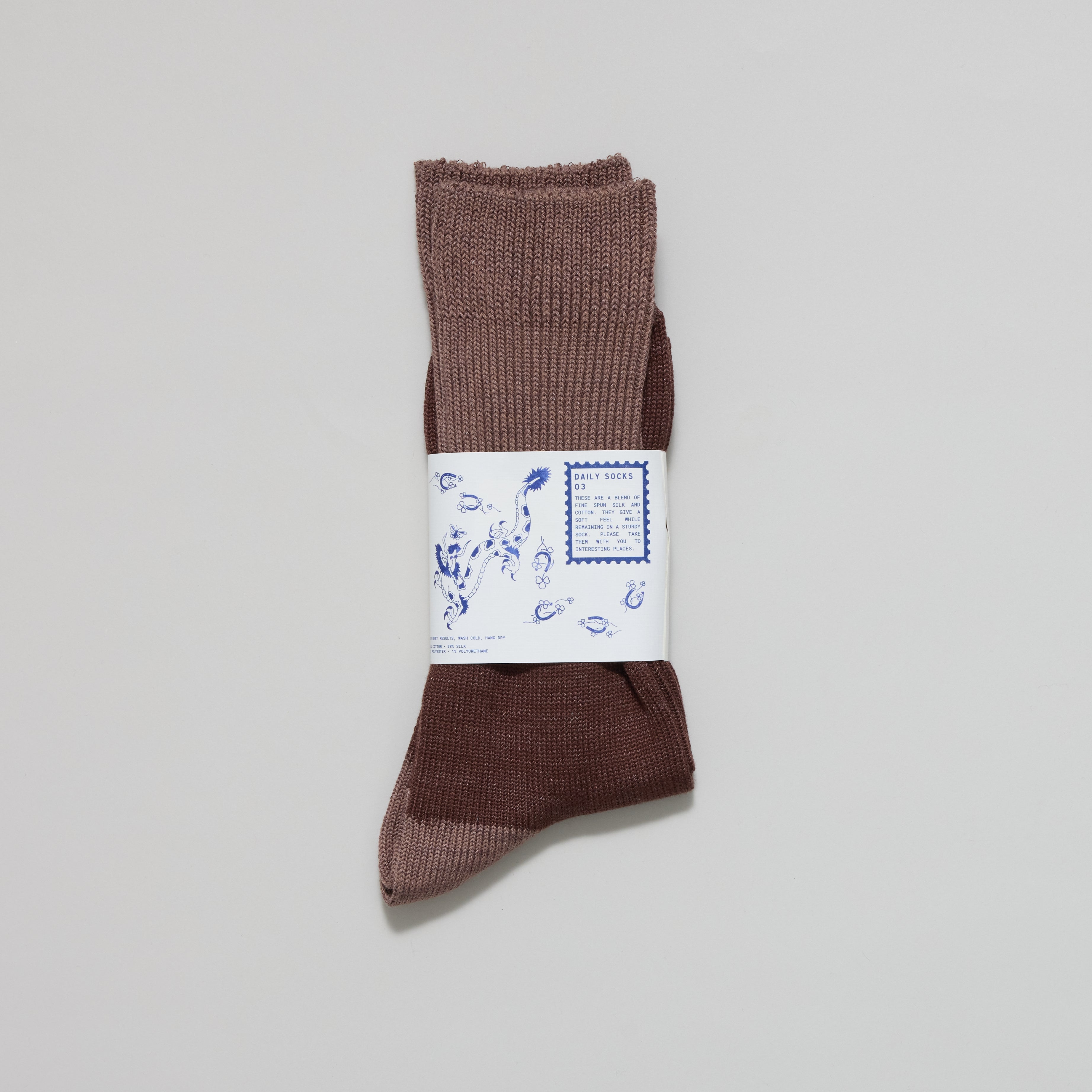 While some silk is taken from shorter fibers, which can give it a slub texture, the silk used in these socks comes from the full fiber of the cocoon. This gives it a much softer, finer feel.