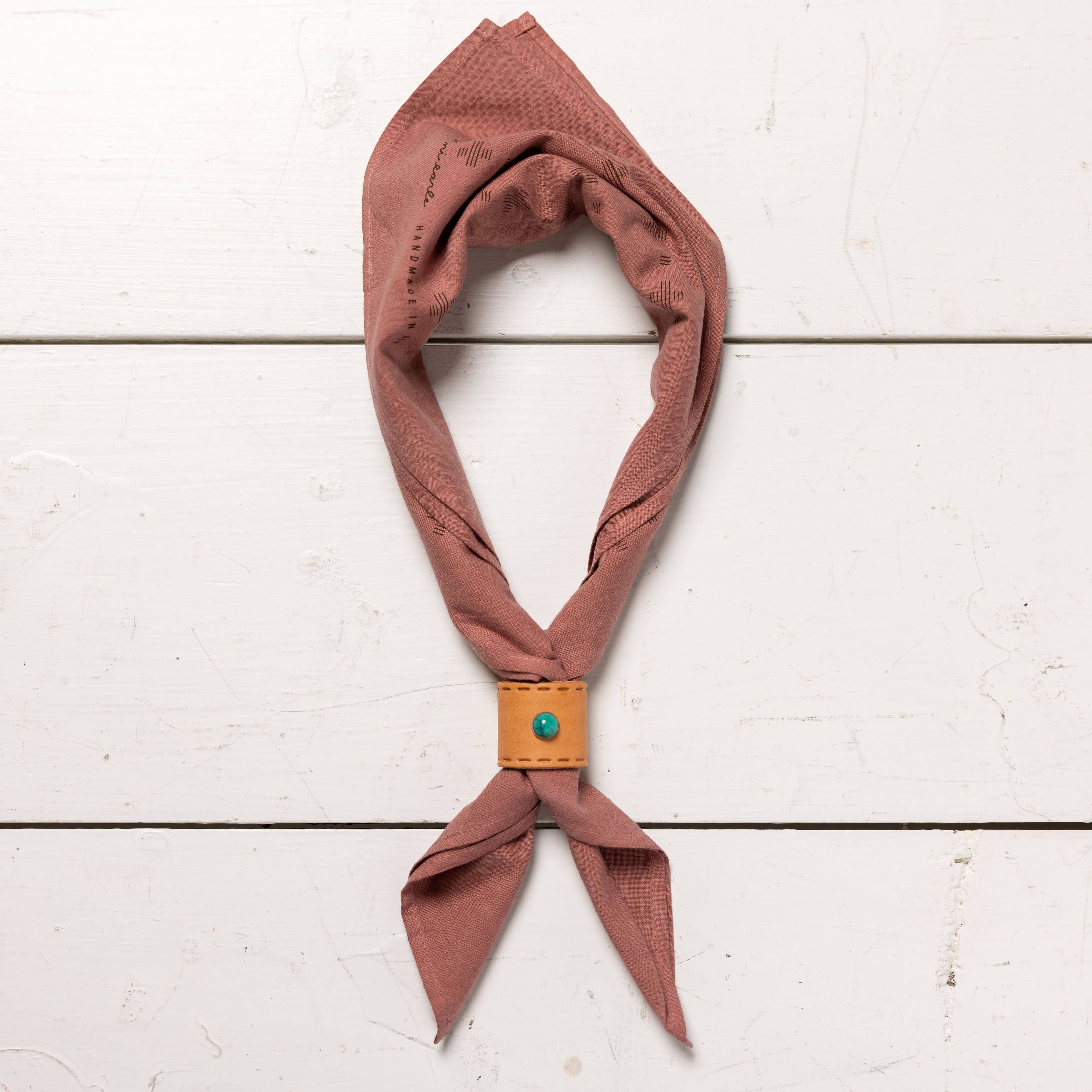 These handmade leather bandana slides are really having a moment! Handcrafted from genuine oiled leather ethically + sustainably made in Portland, Maine Get some today to offer your customers a stylish way to hold their bandana around their neck, hat or a bag strap. These small batch, made in the USA bandana slides are to be used as talismans to help us remember everyday that we are so much stronger and more capable than we know.