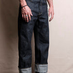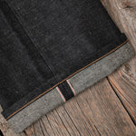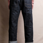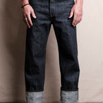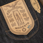 • 16 ounce green cast indigo selvedge denim from Japan