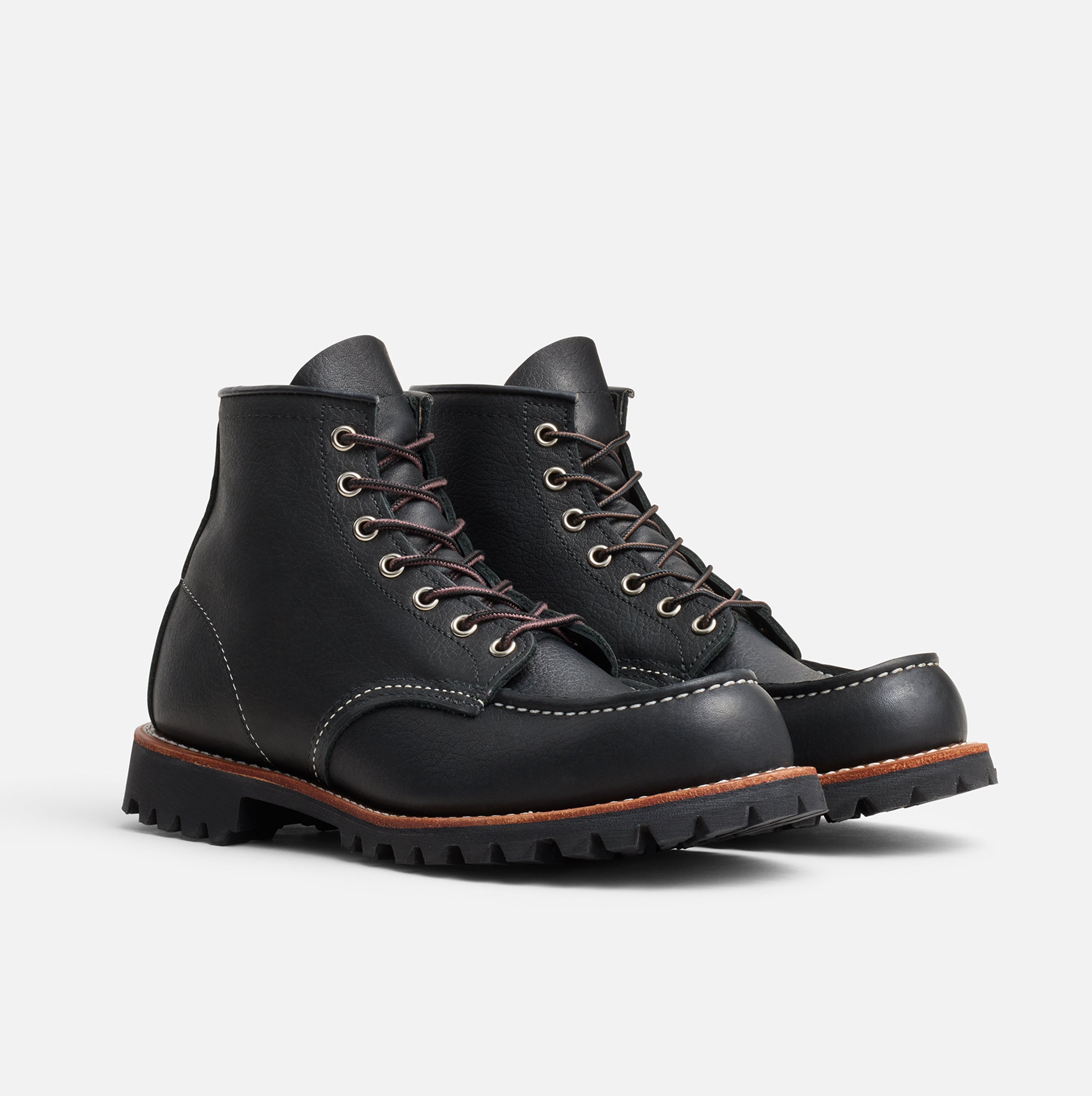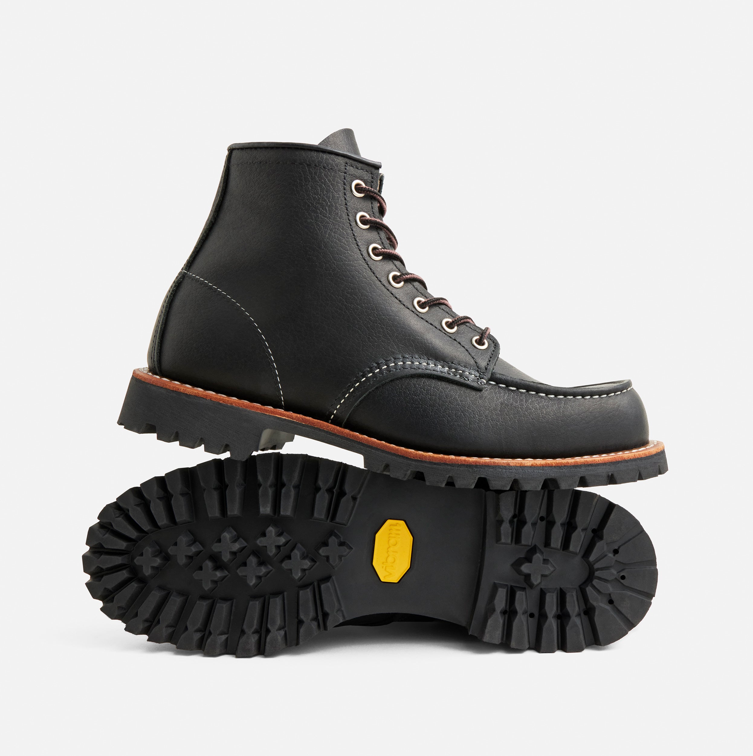 The Red Wing Shoes 2949 Roughneck Moc Toe in Black Oil Slick is a Classic Red Wing Shoes Mocassin style and is made in Red Wing, Minnesota. The Red Wing 6" Moc Toe boot was originally designed for hunters and farmers in the early 1950s. The Red Wing Moc-toe was built to withstand hard labor and harsh weather conditions. The name Red Wing ‘Moc Toe' derives from ‘Moccasin', the traditional Algonquian Native word for the U-shape design of the toe. The Red Wing Shoes Roughneck 2949 is a variation on the ultimate Red Wing classic: The Red Wing 875. The Red Wing 2949 boot has a black Vibram TC4 Lug outsole with and provides maximum grip and outstanding comfort and grip.The Red Wing 2949 Roughneck boot comes with the original black/brown round taslan laces.