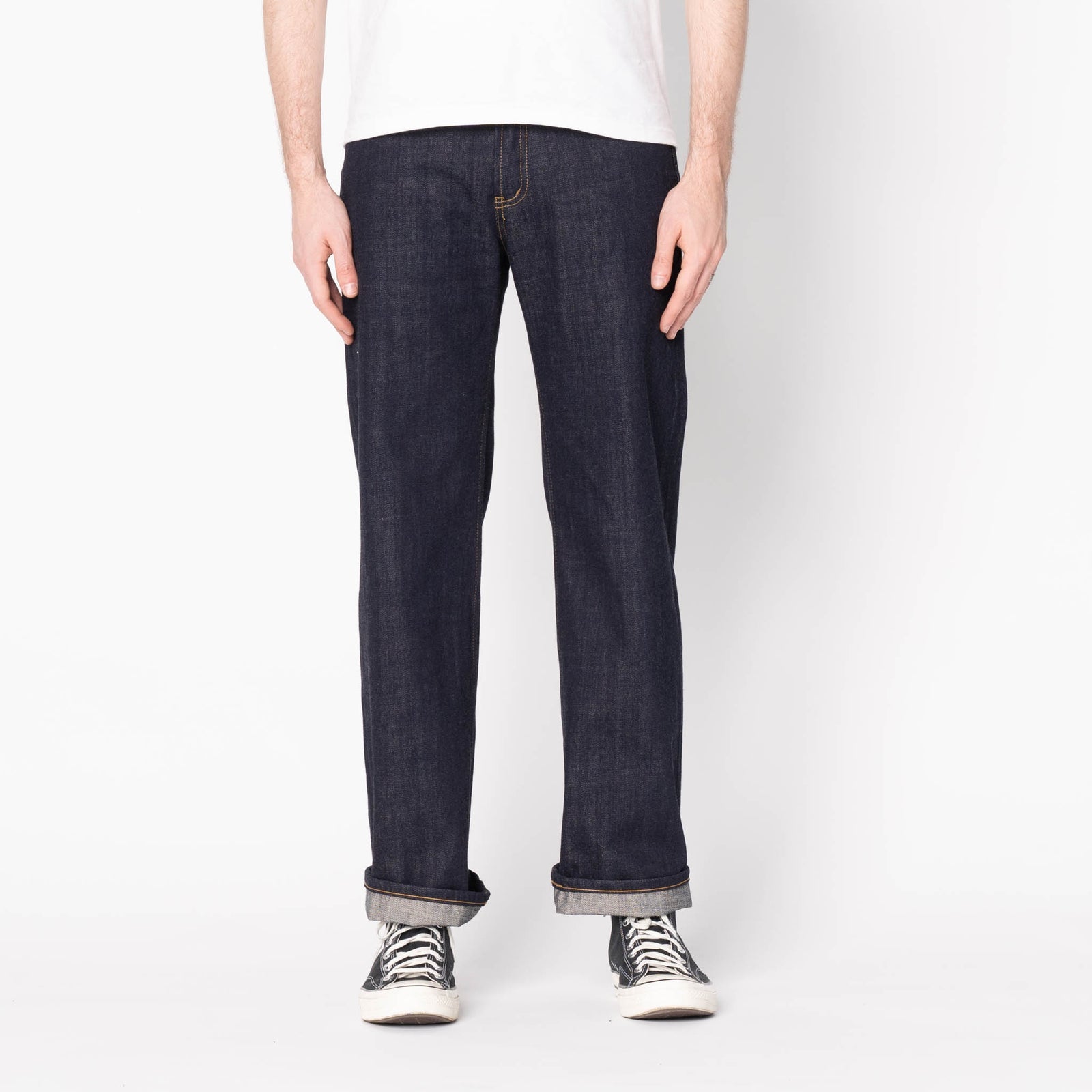 The Strong Guy is a relaxed straight fit; high rise, fuller in the seat and thigh that falls to a wide leg opening.