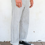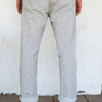 • 9 ounce selvedge indigo stripe fabric from Japan
