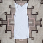 The classic undershirt, made in the ways its meant to be made. These tank tops are made in a similar way as our Tubular Pocket Tees. The machines knit the cotton in a circle, different widths for different sizes. This allows the shirts to sit neatly and comfortably against your skin without rubbing on the side seams, and also eliminates another area where the shirt can come apart.