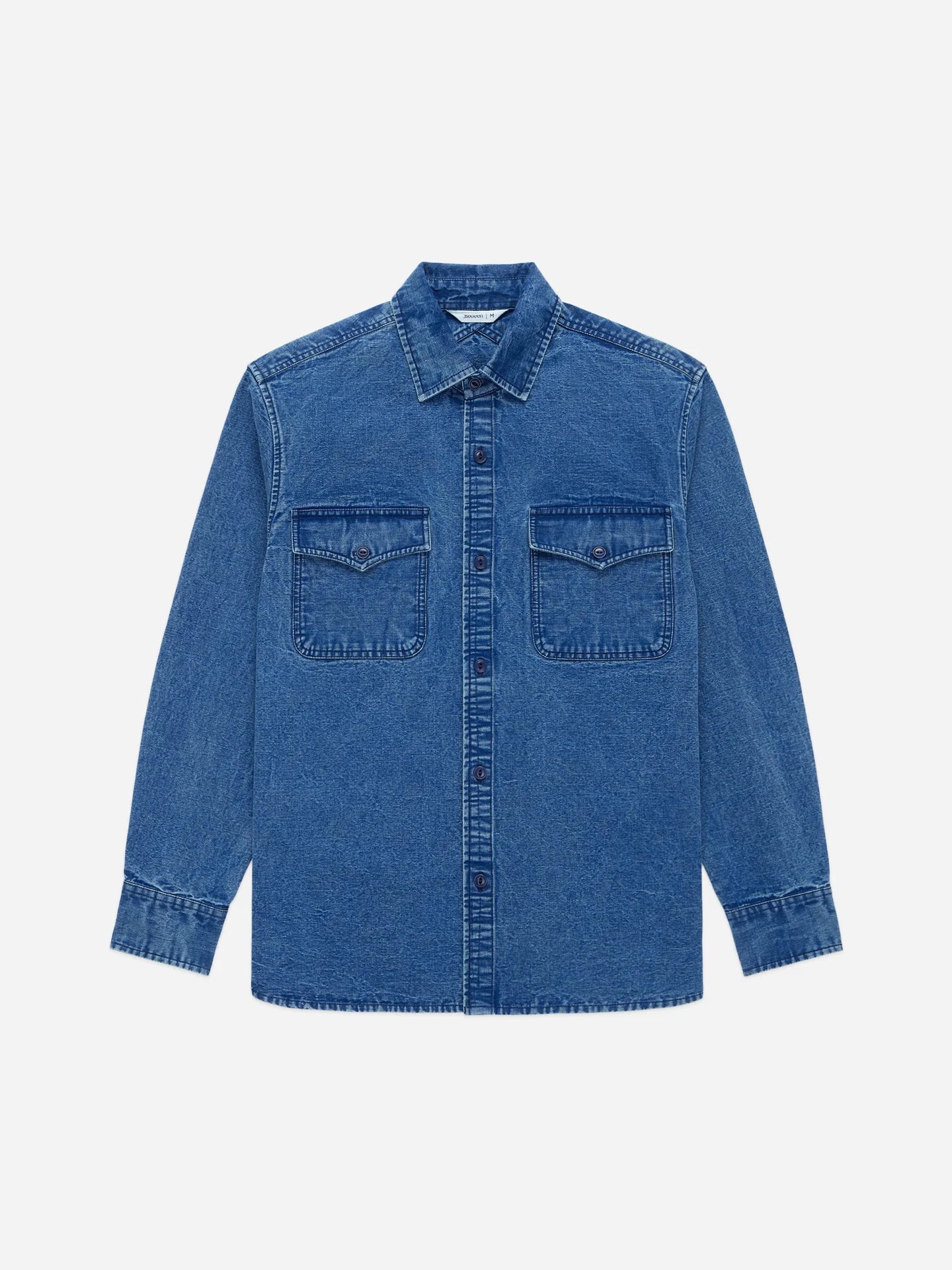 This season's USN Overshirt features a 10.5 oz Japanese indigo canvas woven by Yamaashi Orimono that's been processed with a heavy stonewash treatment to bring out the highs and lows of the deep indigo yarns. The shirt is finished with military-inspired corozo fisheye buttons.