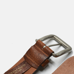 Wide Cognac Brown Leather with Silver Buckle Belt