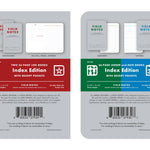 Based on observations of, and conversations with Field Notes customers, we’ve identified specific ways that lots of folks are using them. Our goal was to make this edition, well, a lot more useful. To that end, we have created two “Index” 2-Packs of 56-page Memo Books with covers made from Neenah’s lovely, no-nonsense, Weathered cover stock in “Omnibus Grey” and stamped with red, blue, or green Crown Foil. The insides are printed in two colors on Lynx Opaque Ultra text stock from Domtar. All the “Index” Edition books contain a handy pocket in the back for receipts, baggage claims, a love note, or emergency $20 bill. The first pack contains two Log Books with spaces dedicated to record, rate, and review anything you can think of. They’re as flexible as they are useful, with ample room for notes and a table of contents in the front. The second pack contains one Ledger Book to track expenses, card game scores, mileage, etc. Also in this pack is an undated 56-Week Date Book.