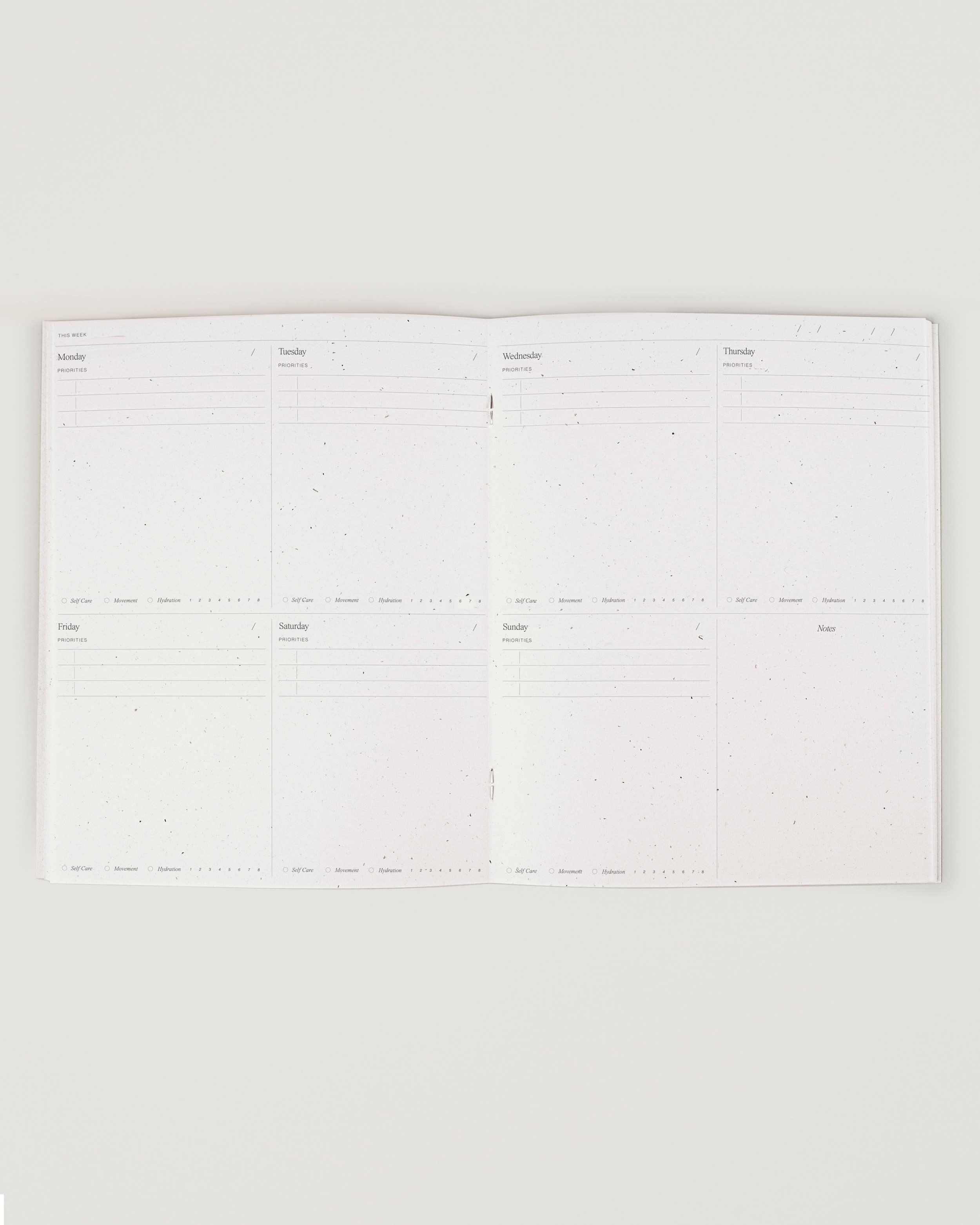A hybrid undated planner and wellness journal, the Week Planner guides you in setting goals and achieving them through your plans.