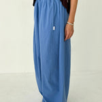 Billowy pants made to move with you throughout the day. Crafted from a light yet durable and elevated cotton they're the kind of pair you can wear anywhere, from casual moments to polished looks. Designed with an elastic waist and side pockets, their unique leg shape sets them apart. A third side panel adds extra volume, creating a sculptural silhouette that’s relaxed, airy, and full of movement.
