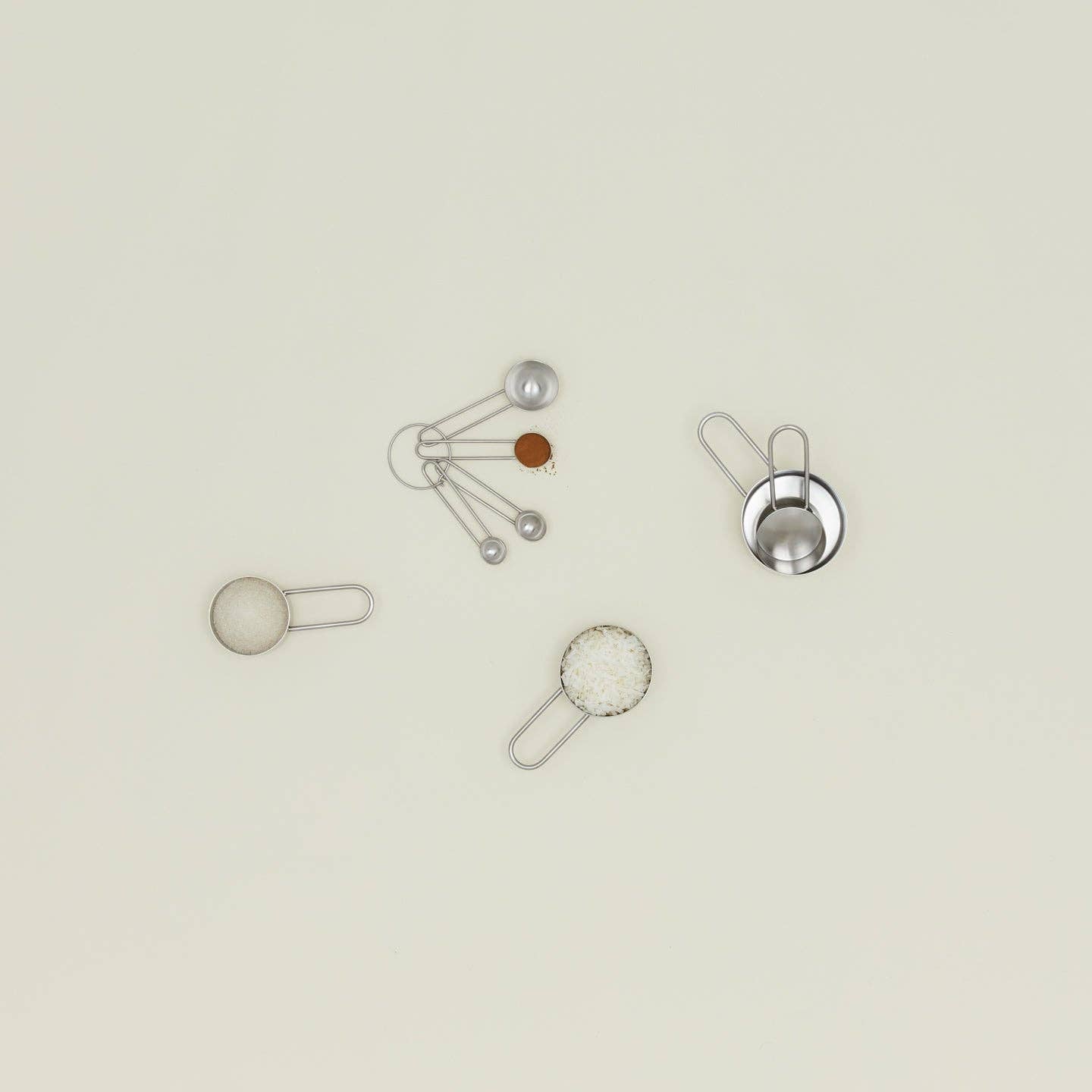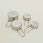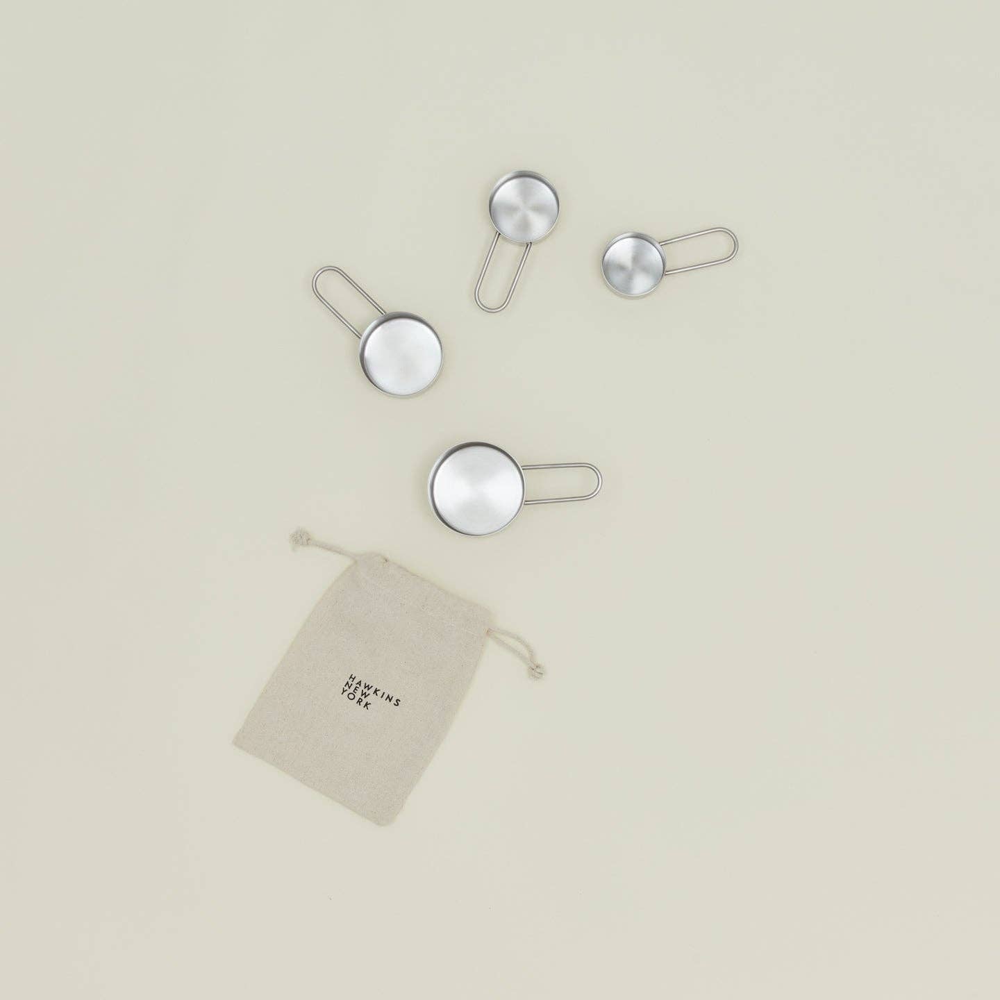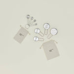 Sleek + shiny + handy Wide loop handle is pleasant in the hand + useful for hanging up, too Or keep 'em stashed in their cotton pouch, out of the way Material: Stainless Steel Care Instruction: Hand Wash Only