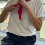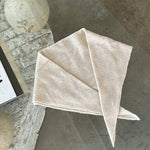 Elevate your wardrobe with the Cashmere Bandana, an elegant revival of the classic square kerchief. The beauty of this super soft accessory lies in its adaptability. Styling options are endless, whether worn as a neck scarf or styled as a head bandana. It's the perfect addition to any outfit and makes a timeless gift for loved ones. Components: "Unwrap this package to find the most heart-meltingly cute pouch ever, complete with the sweetest, friendliest instructions on how to wear them together! It's like a little pocket of joy waiting for you!" Contents: 35 cashmere 65 wool Sizing: One size fits most Approximate Measurements: Width : 32" / Length: 21 1/2" Care Instructions: Dry clean only