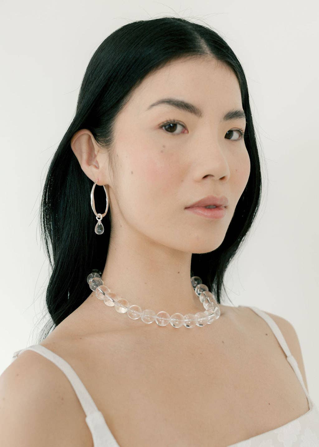 Includes a smooth glass briolette charm with a hinged ring.