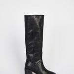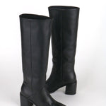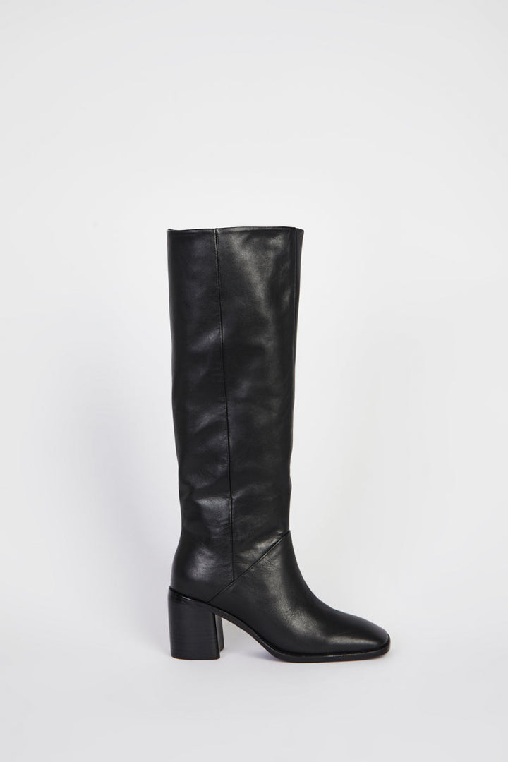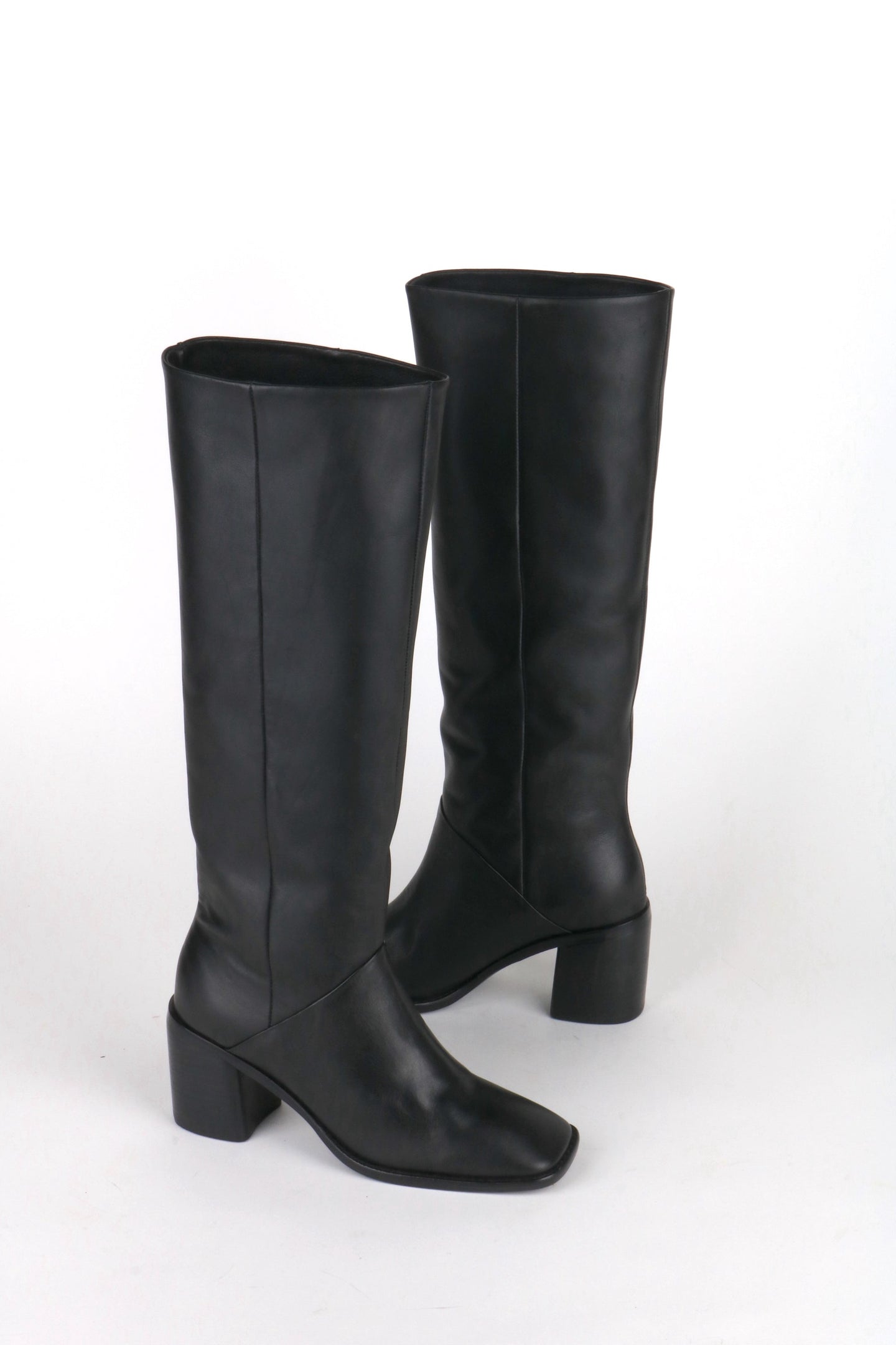 A tall boot that is different. We love the combination of the square toe with the straight shaft, wear it bunched down, or tall and straight.