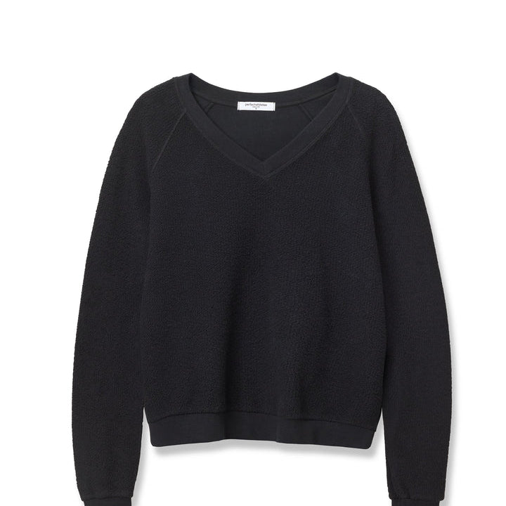 Zuri Reverse Fleece V Neck Sweatshirt (True Black)