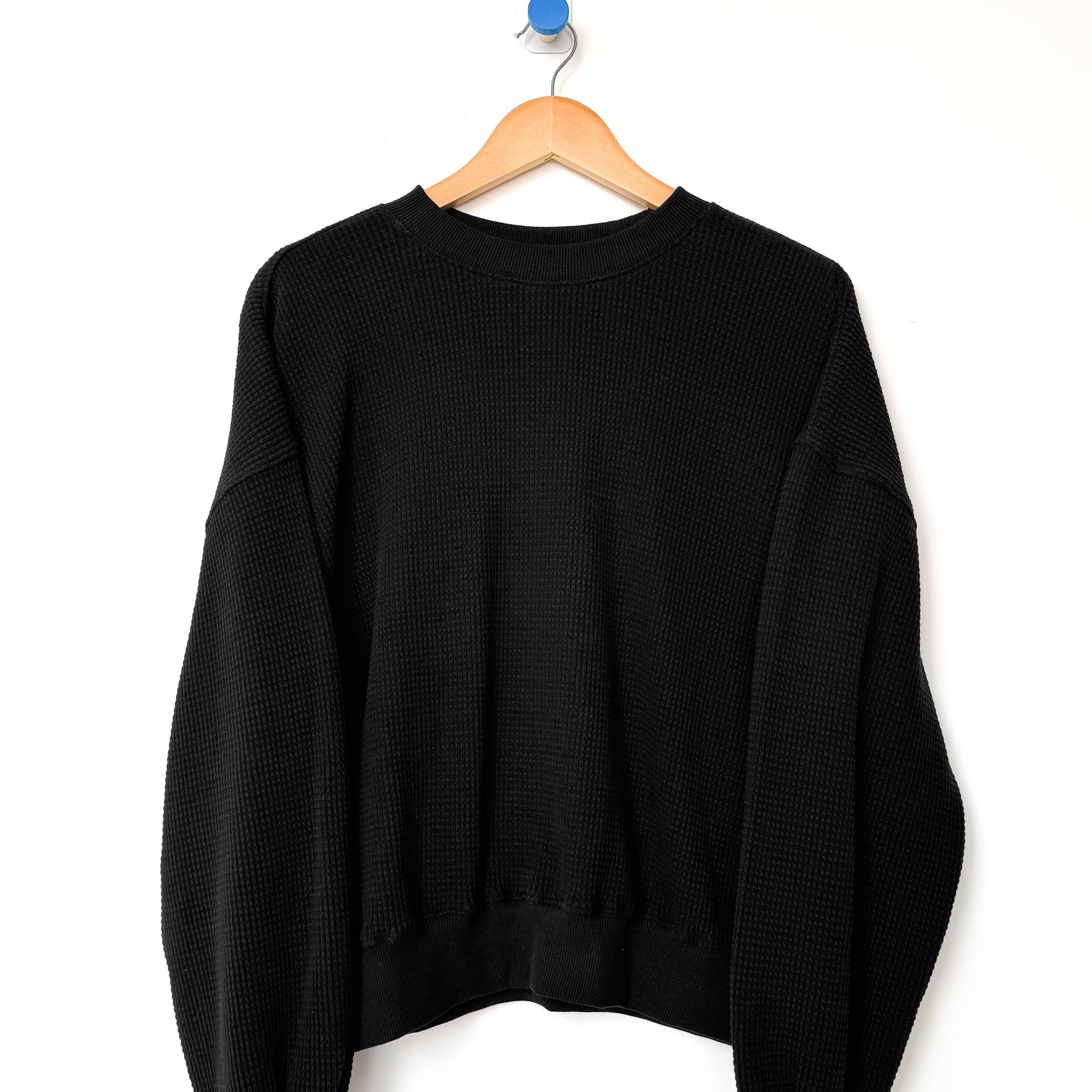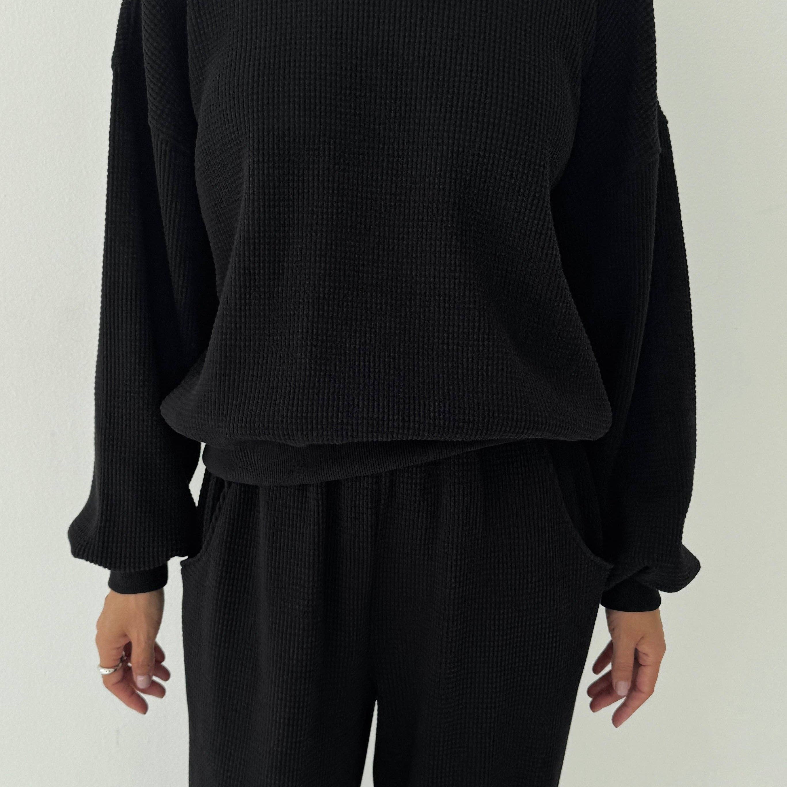 Zuri Reverse Fleece V Neck Sweatshirt (True Black)
