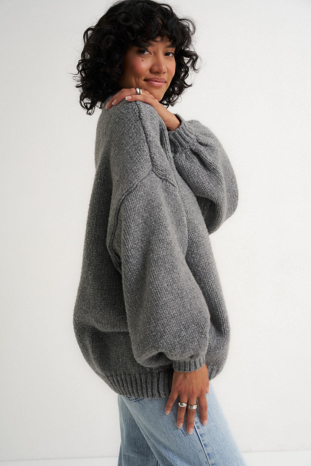 Attn: You found your new go-to sweater. With an oversized fit, balloon sleeves, and ribbed crew neckline, this is the knit you can't live without.