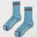 The Boyfriend Sock is one of our signature styles and a year round bestseller. She is the perfect mix of function and fashion creating an effortless sporty vintage charm to any outfit. She is slightly longer than a classic crew and has a contrast double stripe. Durable and comfortable she upgrades any outfit.