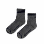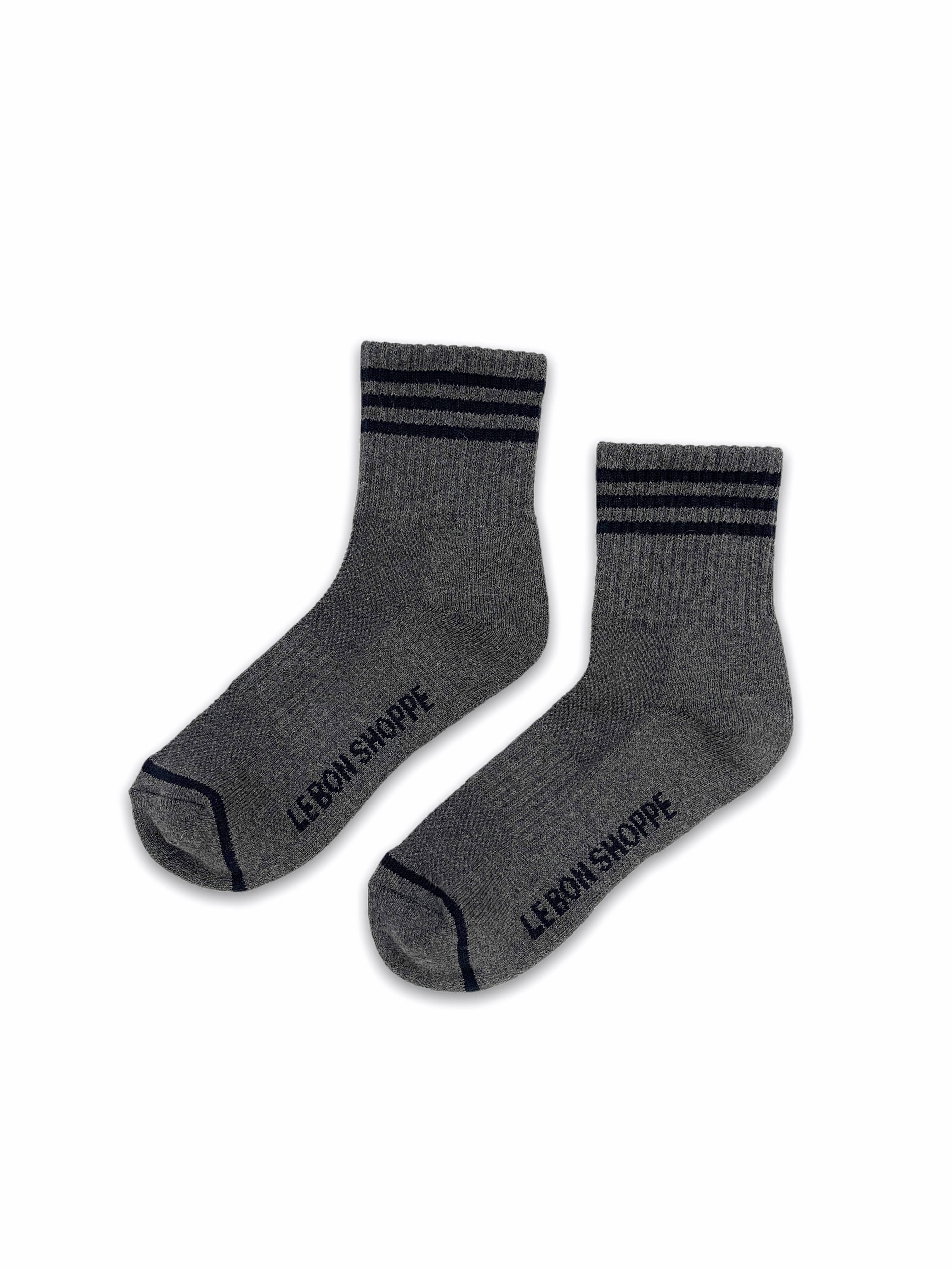 These beauties feature a triple contrast stripe at the opening and a shorter classic crew sock length. She is a universally quintessential sock and especially flattering for our petite ladies.