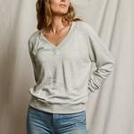 Sinead Relaxed French Terry V Neck Sweatshirt (Heather Grey)