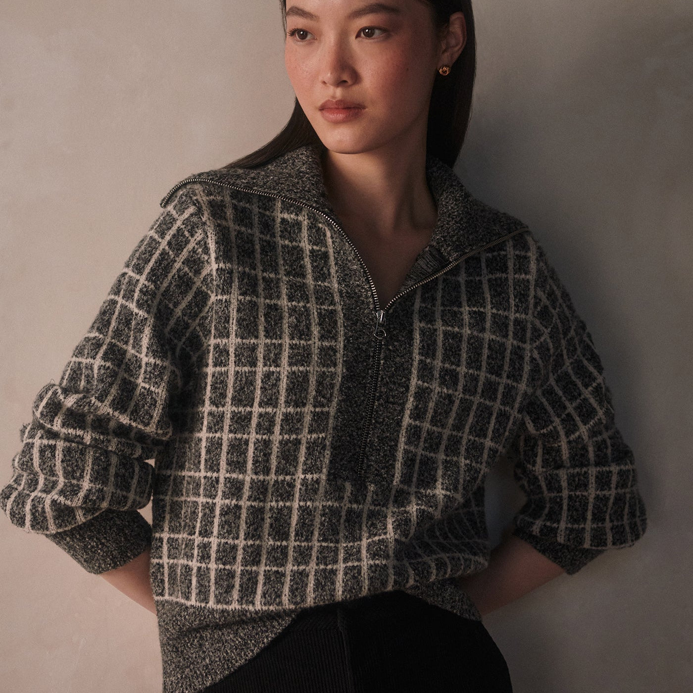 Furley Half Zip Knit (Charcoal Marle)