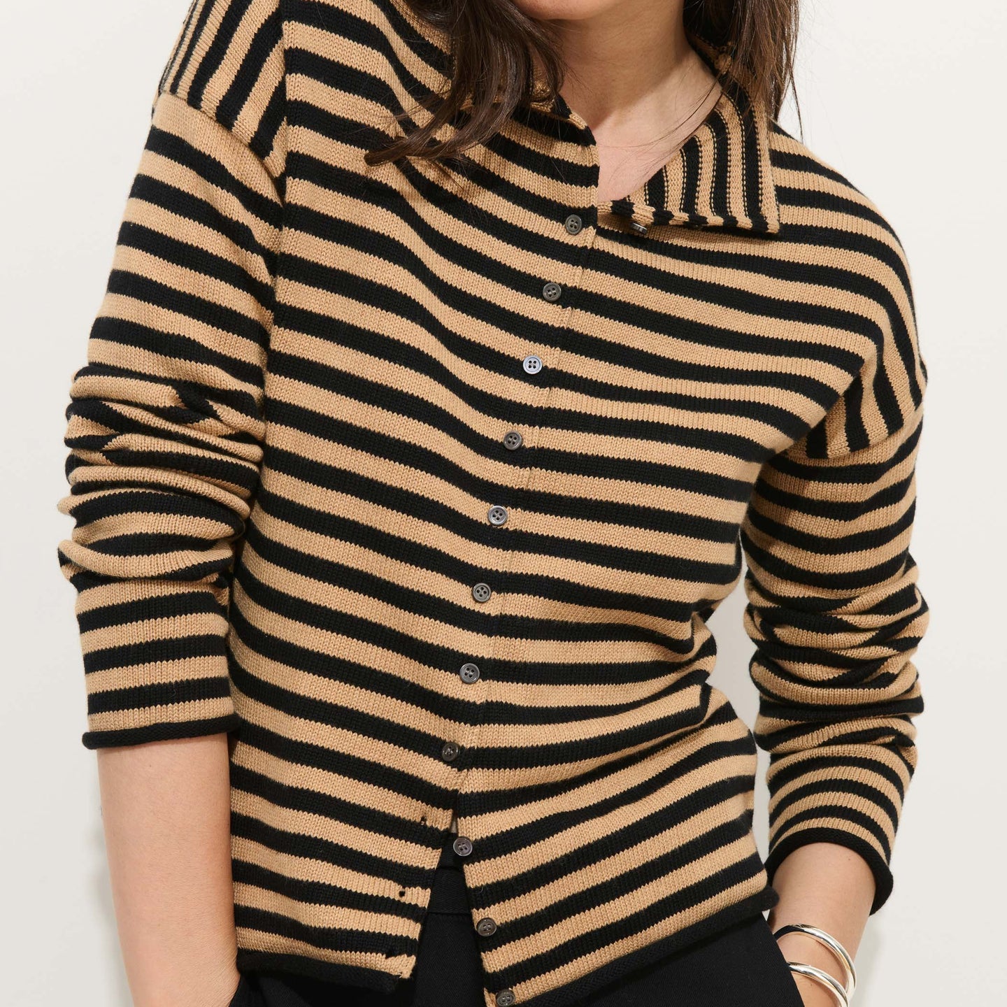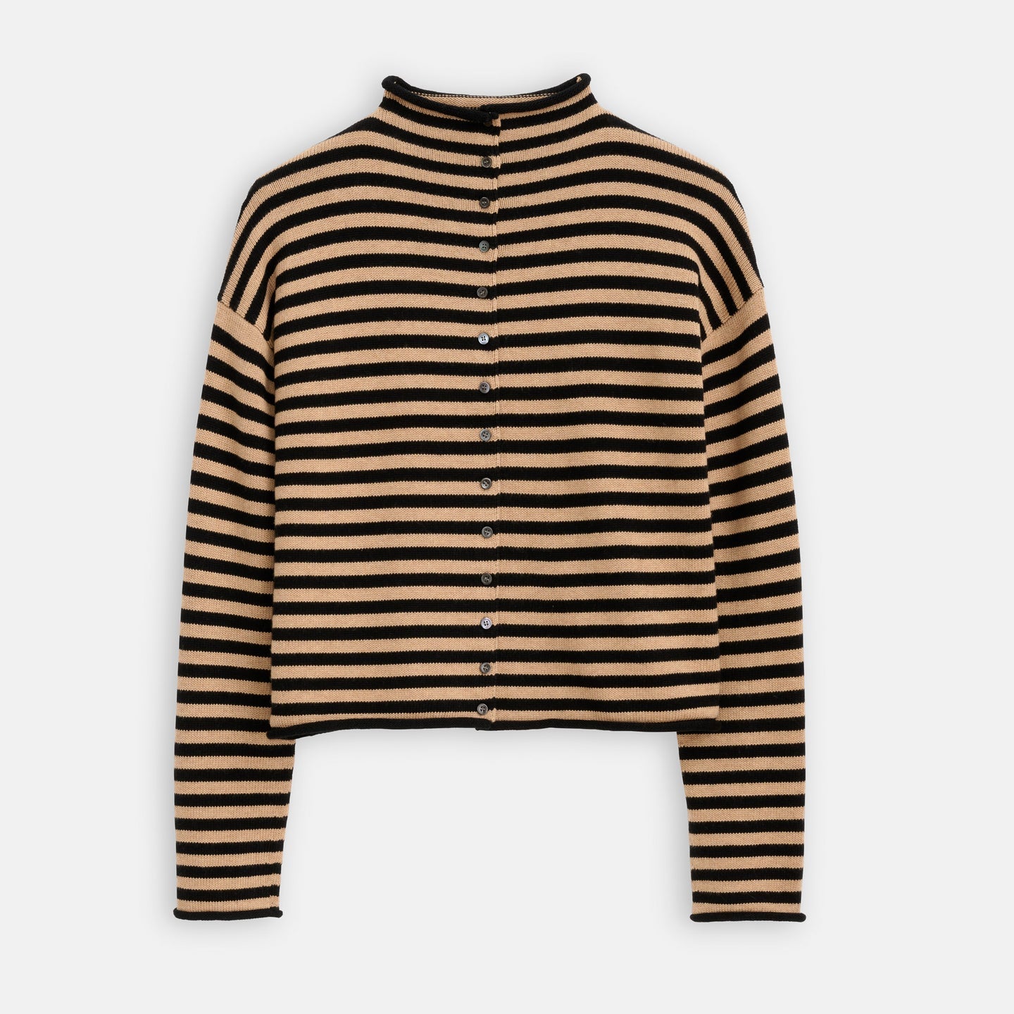 Taylor Striped Cardigan in Cotton Cashmere (Black/Camel)