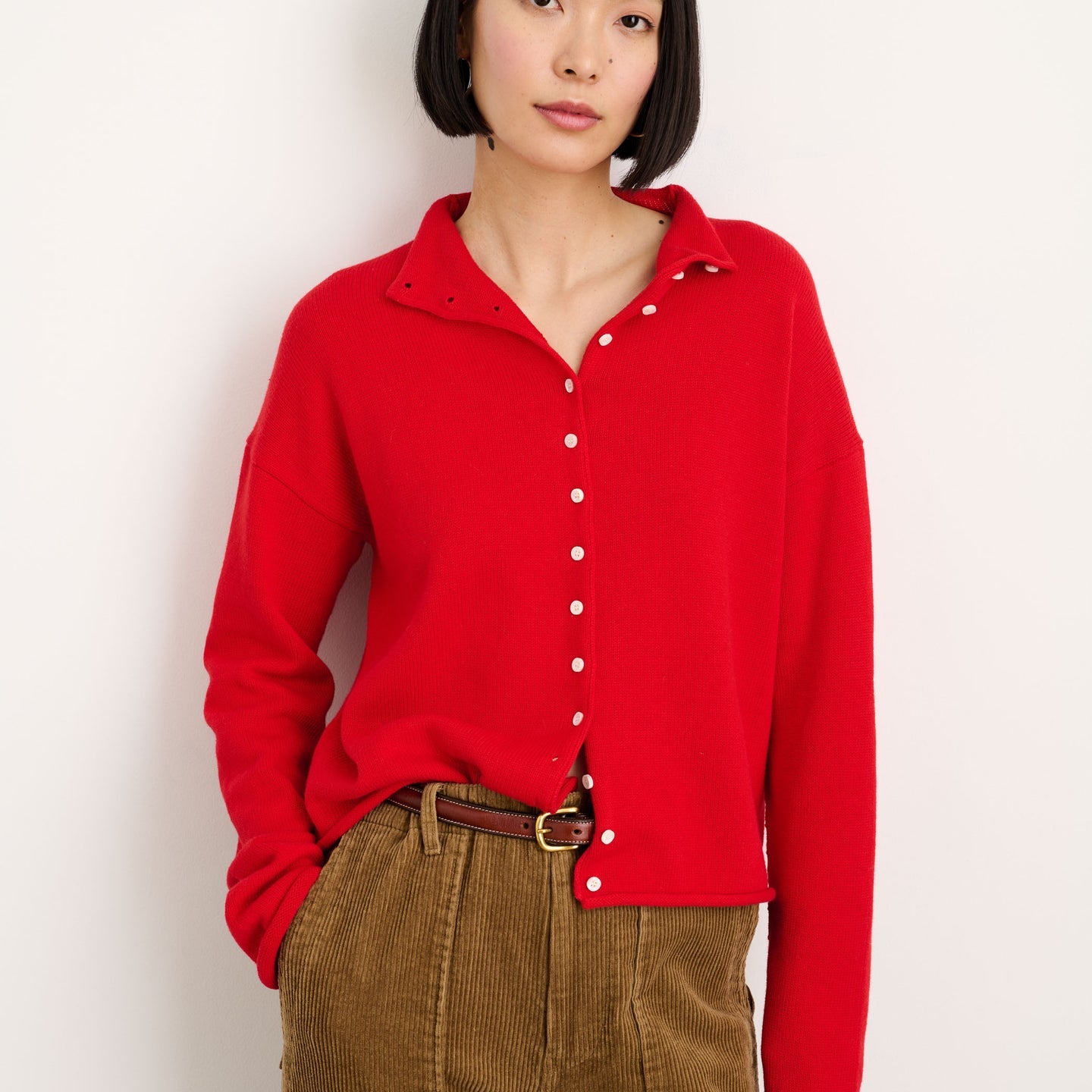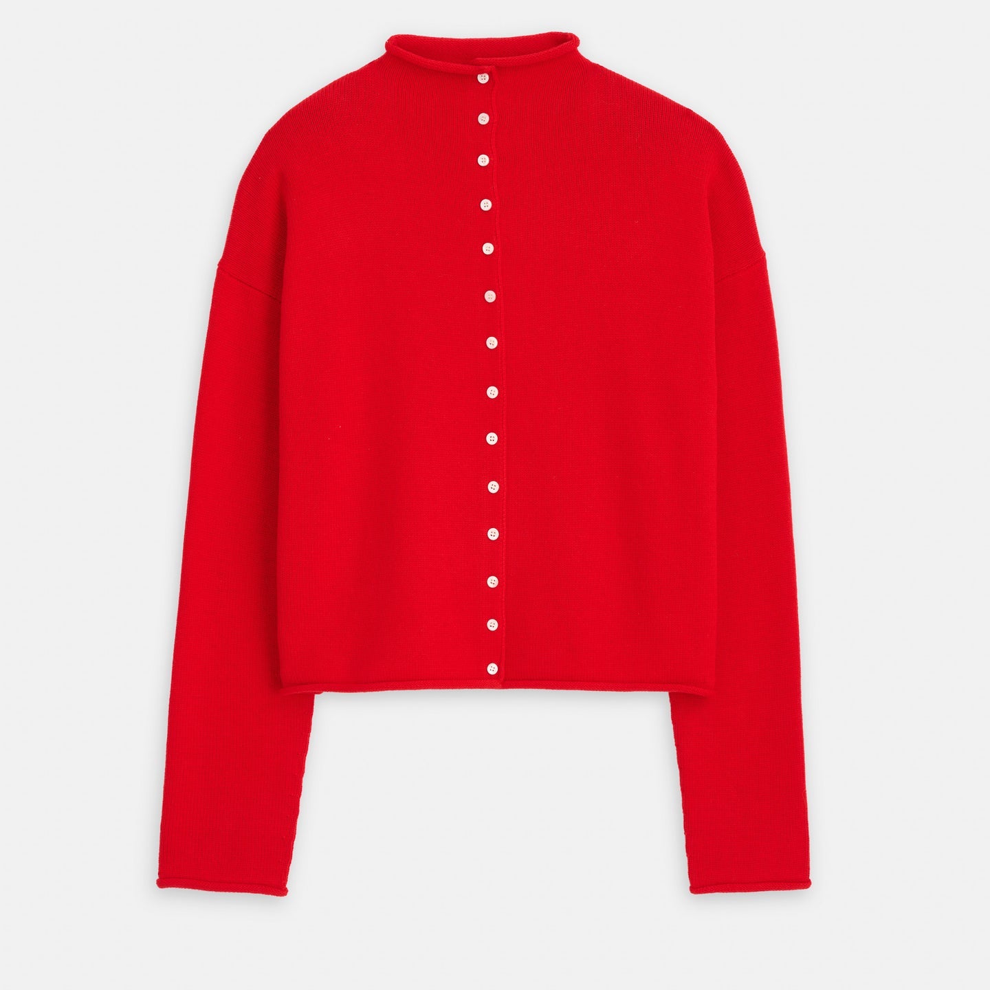 Taylor Rollneck Cardigan in Cotton Cashmere (Fire Red)