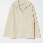 Chunky zip cardigan in our alpaca / pima cotton knit with a versatile two way zip for styling. Contrasting pima and alpaca yarns add breathability to the knit’s coziness as well as textural coloration.