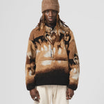 This functional top features a high collar and a large front pocket, as well as a four-button closure for added security.