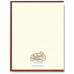 • A2 size (4.25” x 5.5”) • Blank inside • Gold foil stamped by hand in our studio • Digitally printed on Carbon Neutral / Chlorine Free / FSC Certified linen stock • Includes 100% recycled kraft envelope and cellophane sleeve • Designed and printed in Canada