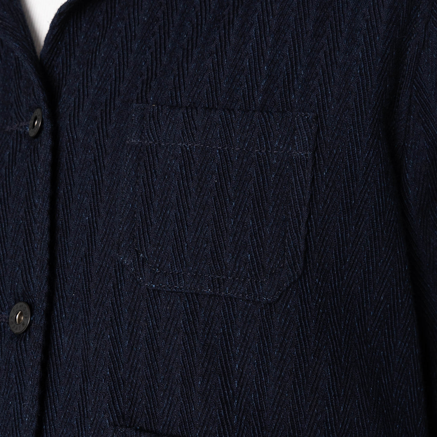 The Indigo Sugiaya is a 12oz Japanese herringbone twill, carefully fabric-rinsed for added comfort and a softened hand. This rinse treatment plumps up the fabric, enhancing the herringbone pattern with a three-dimensional depth that becomes even more pronounced with wear. The result is a beautifully textured, versatile fabric that balances both style and comfort. Other details include tonal stitching, black military-spec buttons and rivets, and a premium Horween Chromexcel Cavalier Ink pull-up leather patch that offers a touch of luxury and durability to this exceptional piece.