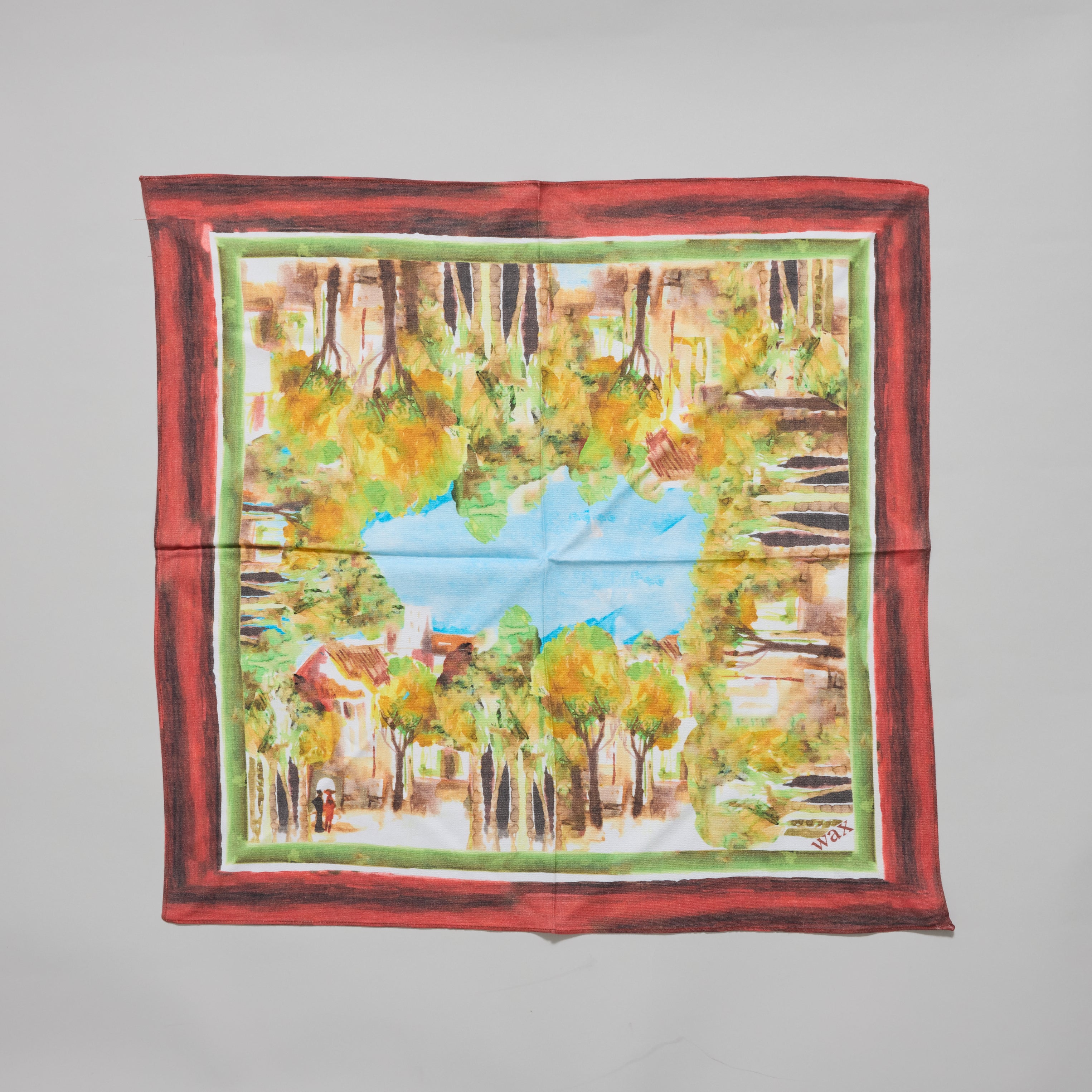 Neck Scarf Village Scene (Green Multi)