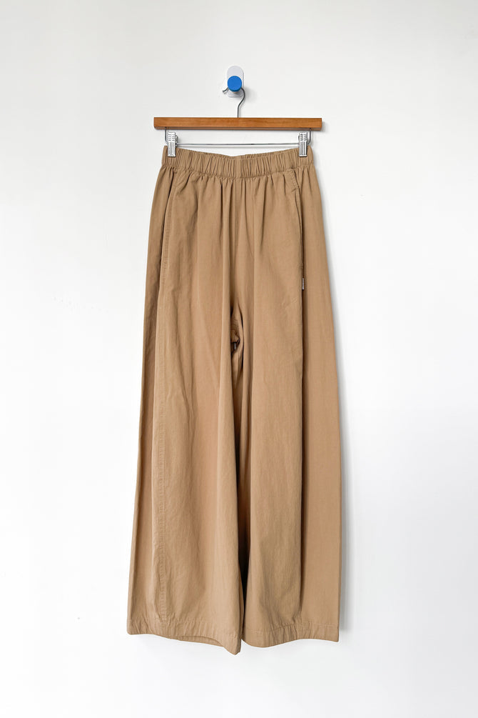 Billowy pants made to move with you throughout the day. Crafted from a light yet durable and elevated cotton they're the kind of pair you can wear anywhere, from casual moments to polished looks. Designed with an elastic waist and side pockets, their unique leg shape sets them apart. A third side panel adds extra volume, creating a sculptural silhouette that’s relaxed, airy, and full of movement.