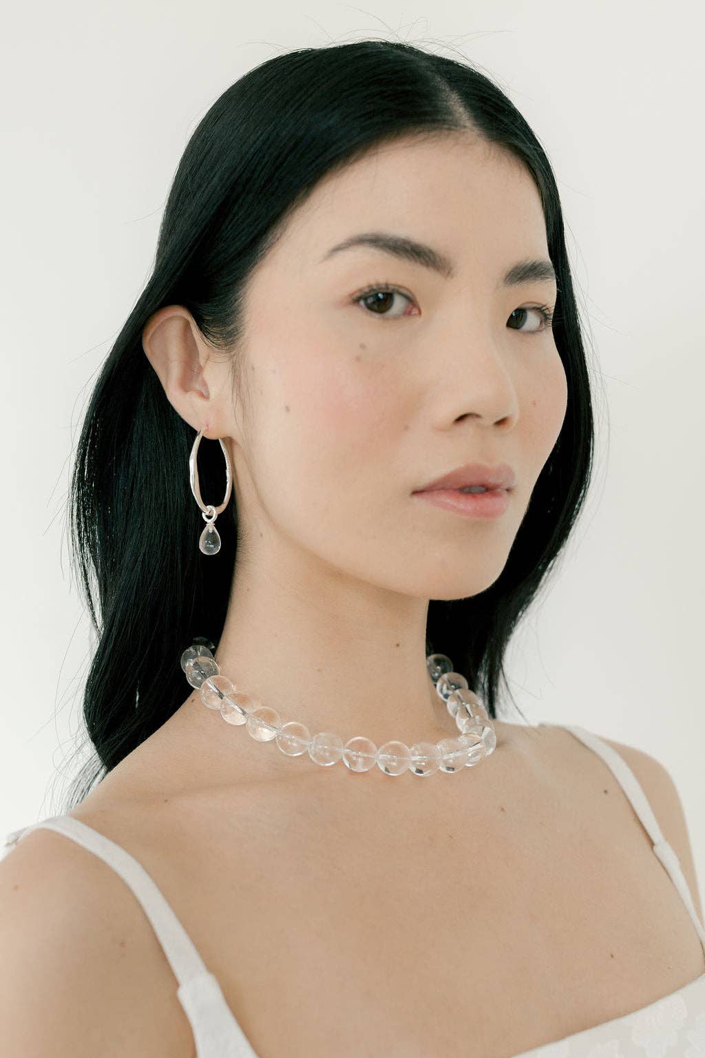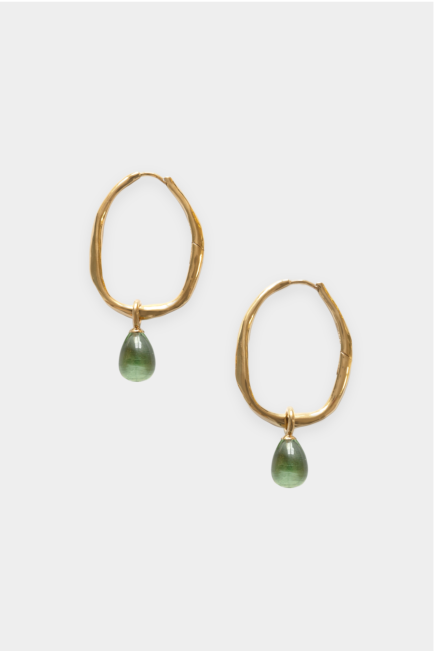 Romy Hoops + Small Drops: Hibiscus / Gold Plated Brass (1 micron), Glass