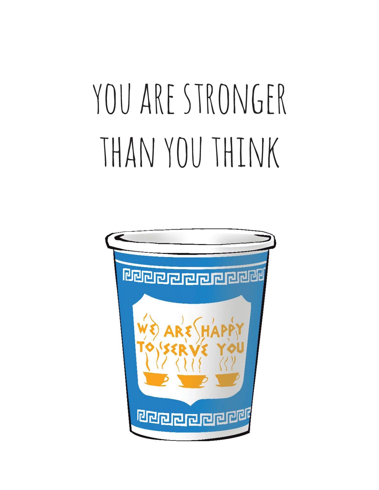 You Are Stronger Than You Think Blank Inside A2 - 4.25" x 5.5" Printed in New York City Each Design is Hand Illustrated Printed on High Quality Recycled 30% Post-Consumer Felt Paper using wind power process, FSC Certified and Acid Free 100% Recycled Post-Consumer and FSC Certified Kraft Envelope Premium Eco Protective Cellophane Sleeve derived from plant-based PLA and certified compostable