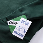 Super heavyweight quarter zip by Power Goods, Organic, 16oz Heavyweight, GOTS certified, side ribbing, 100% cotton brushed fleece, elastic cuffs and waistband