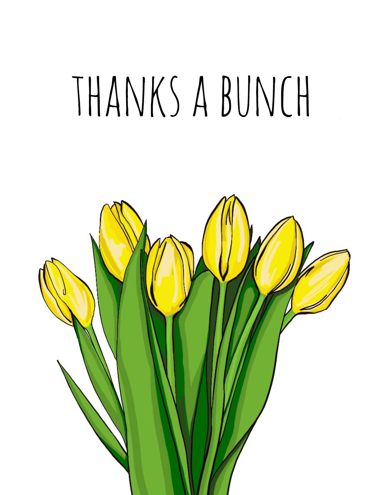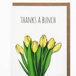 Thanks A Bunch Blank Inside A2 - 4.25" x 5.5" Printed in New York CityEach Design is Hand Illustrated Printed on High Quality Recycled 30% Post-Consumer Felt Paper using wind power process, FSC Certified and Acid Free 100% Recycled Post-Consumer and FSC Certified Kraft Envelope Premium Eco Protective Cellophane Sleeve derived from plant-based PLA and certified compostable
