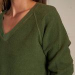 Zuri Reverse Fleece V Neck Sweatshirt (Fern Green)